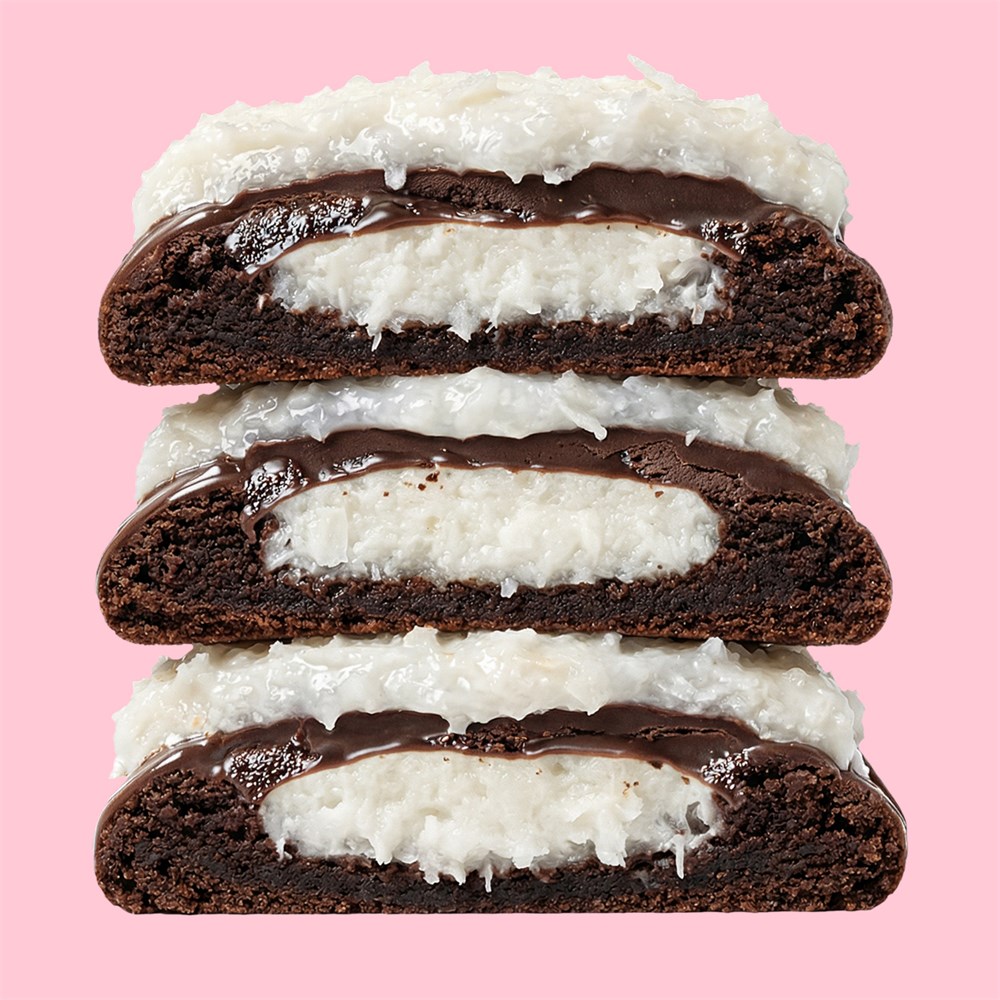 Тот самый батончик в форме печенья! Сливочная начинка, кокос и полная глазировка шоколадом - райское наслаждение. Срок хранения при комнатной температуре - 5 суток. СОстав: мука пшеничная, молоко, сахар песок, масло сливочное, молоко сгущенное, яйцо куриное, стружка кокосовая, глазурь белая, премикс кокос, какао порошок, глицерин, крахмал, сода, разрыхлитель, соль.