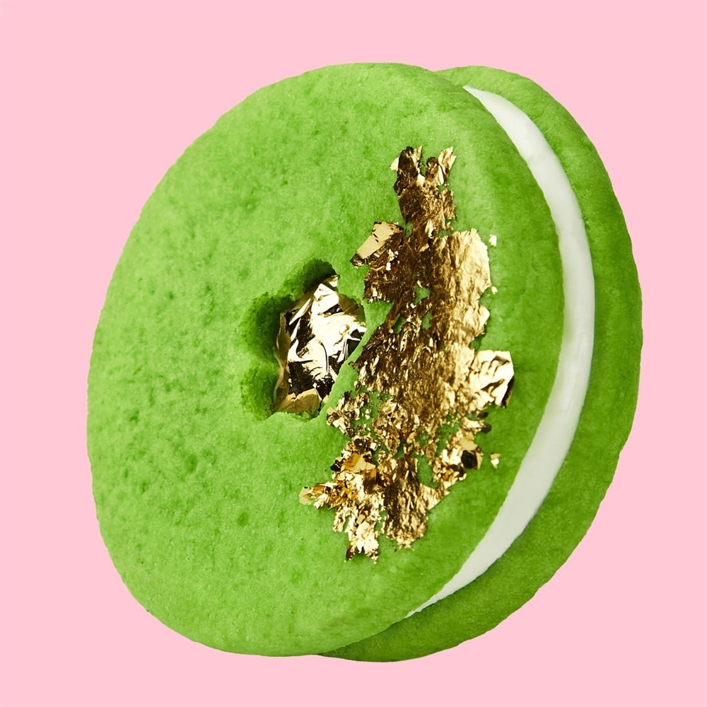 Лимитированное ко Дню Святого Патрика. Две зеленые подушечки - манго. Сочная толстая прослойка посредине - сливки. Срок хранения при комнотной температуре - 2 часа. Срок хранения при температуре +2+6 в холодильнике - 24 часа. Состав: сыр творожный, мука пшеничная, масло сливочное, сахар, яйцо куриное, паста манго, глицерин, краситель, крахмал, сода, разрыхлитель, соль.