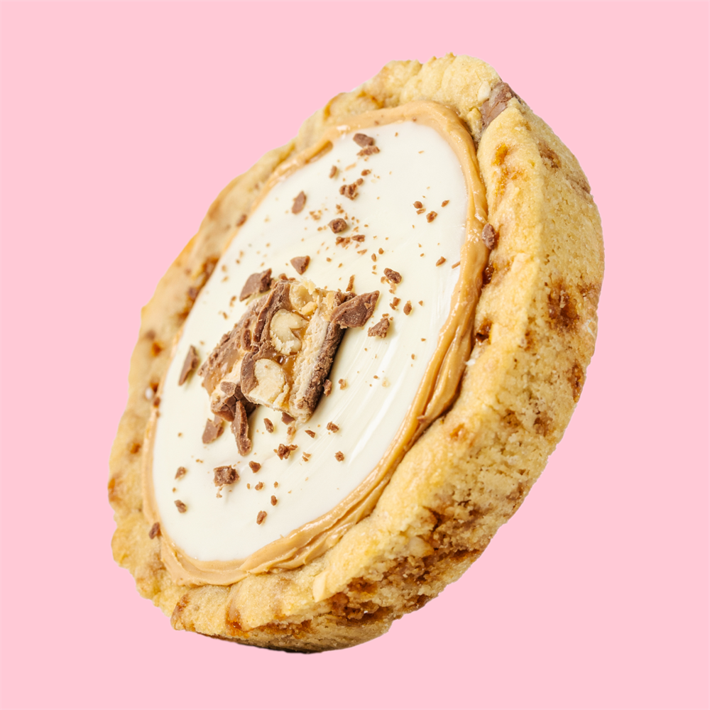 Классическая база с ломтиками шоколада, арахиса и карамели с хрустящей корочкой белого шоколада, пастой и mini-сникерсом сверху. Срок хранения при комнатной температуре 5 - суток. Состав: мука пшеничная, паста арахисовая, масло сливочное, глазурь белая, сахар, яйцо куриное, шоколад молочный, карамель, арахис, сахар тростниковый, батончик Snickers, сода, соль, крахмал, разрыхлитель.